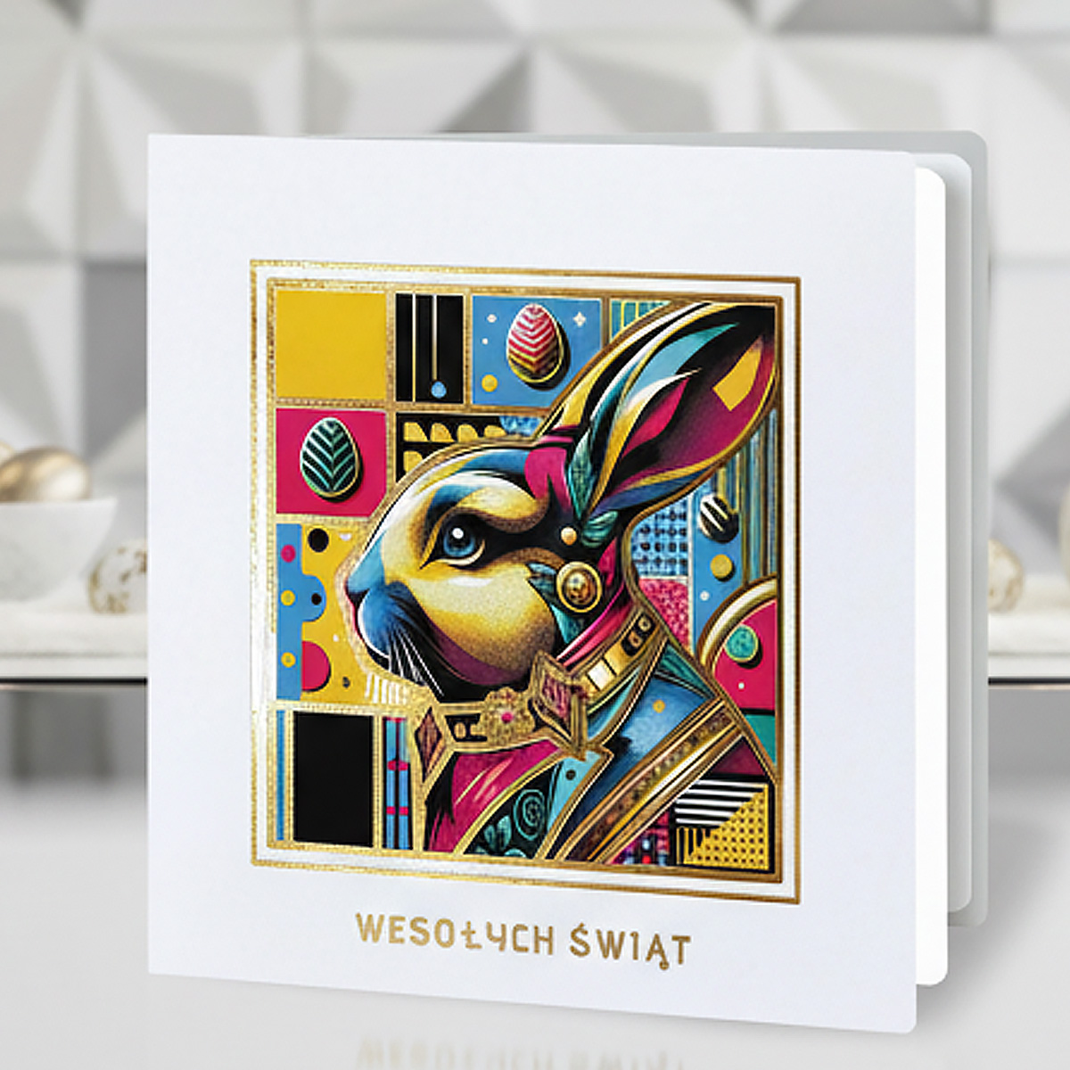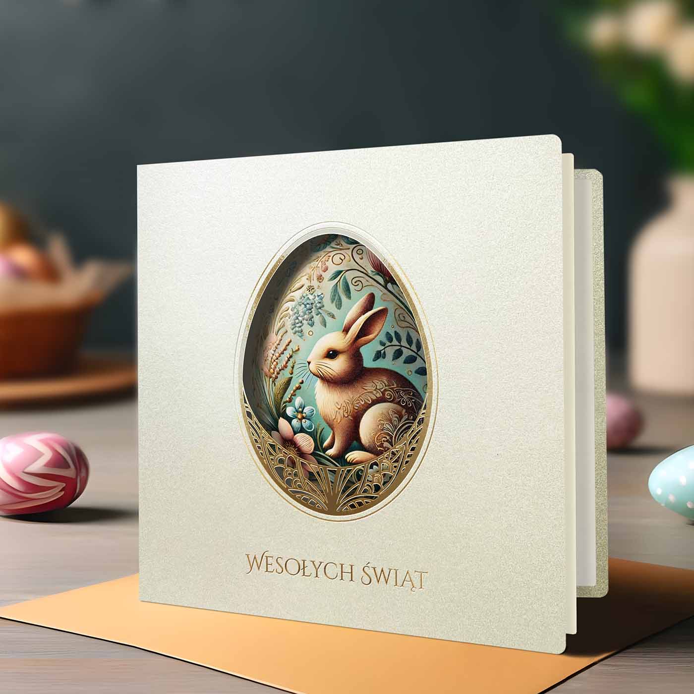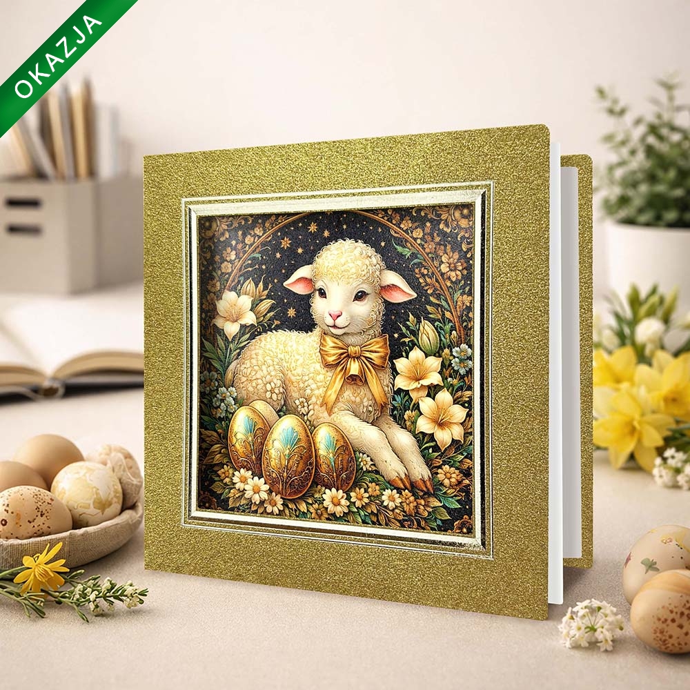Kartka Wielkanocna z Kolorową Grafiką i Złoceniem