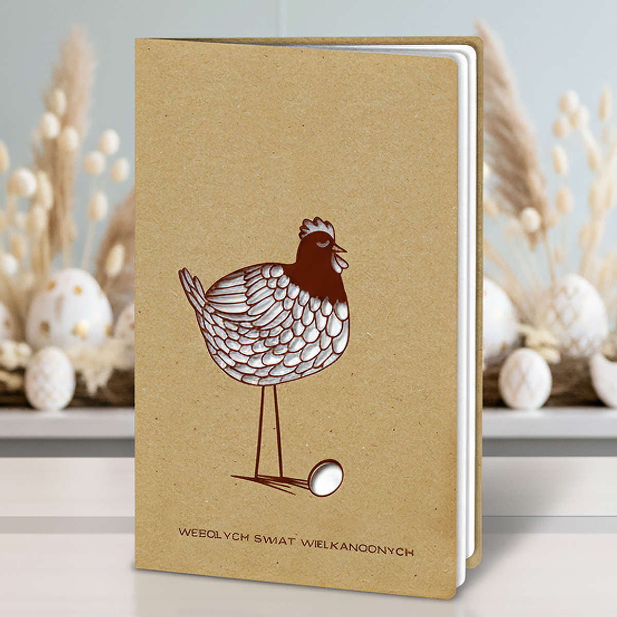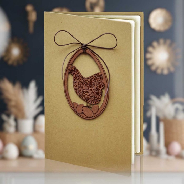 Kartka Wielkanocna w stylu EKO - Drewniana Kura