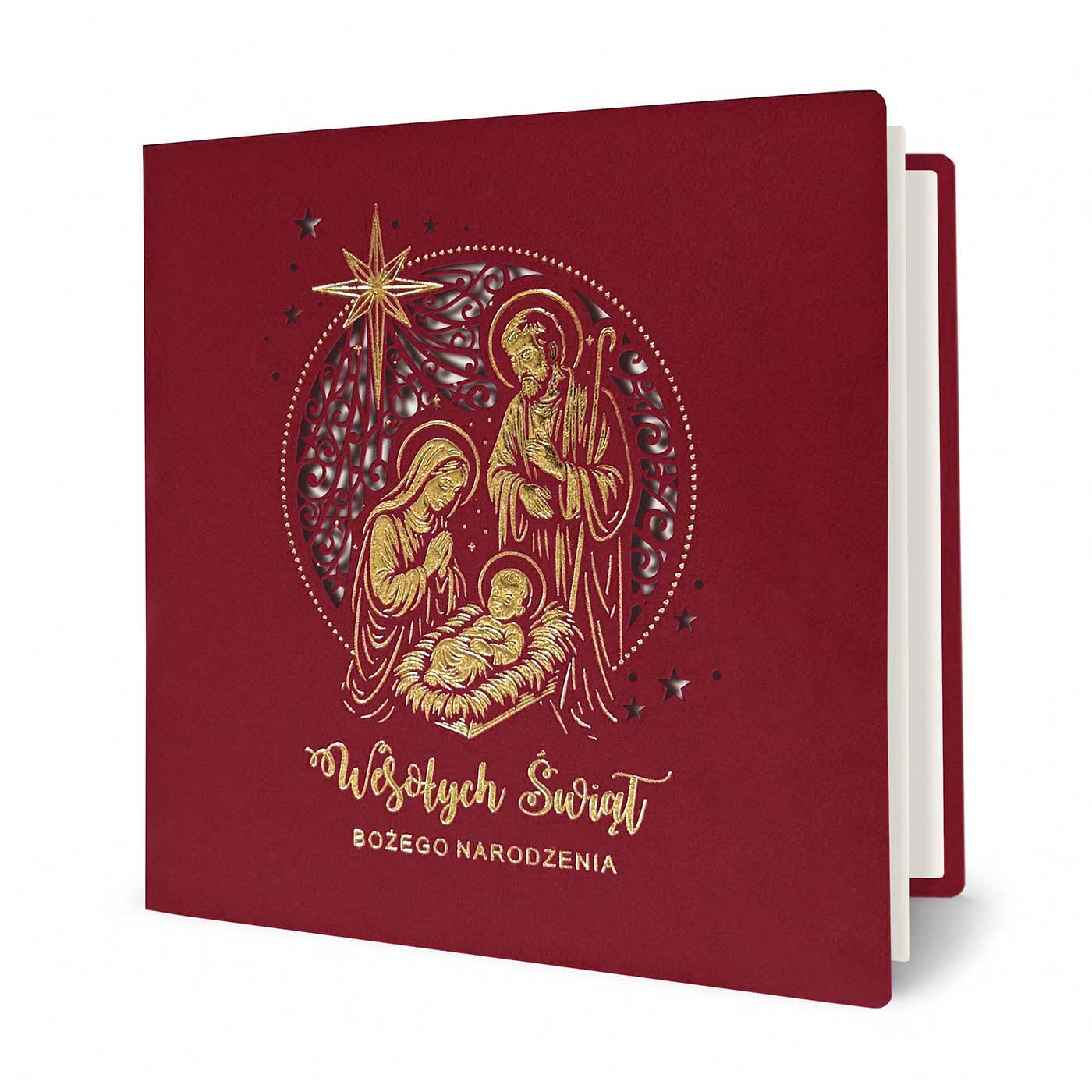 Kartka Świąteczna PREMIUM - Święta Rodzina ze Złoceniem i Ażurowym Tłem